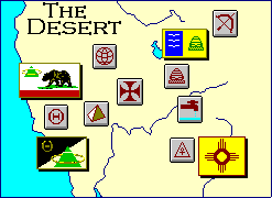 Because it combined the mobility and long distance killing power that soldiers with a memory of indutrial era wars had come to expect, the horse archer was the first medieval fighting style to emerge after the collapse of civilization. For a few centuries, it dominated the old United States, until it was discovered that large warhorses carrying heavily armored knights could often stand their ground against an attack of horse archers; however, it was only in the settled communities of the forest zone that there was enough grain to feed these large horses, so the armies of archers on grass-fed ponies remained dominant on the open prairie. Among the nomadic herdsmen of the plains and desert, just about every adult male (or roughly a quarter of the population) is trained in the arts of war simply because the management of a herd was so much like battle itself. The cowboys circle the herd on fast ponies, leading it in a chosen direction, splitting it into smaller sections and selecting a few head of livestock to pick off for the day's meal with a couple of well-aimed arrows. The techniques for slaughtering cattle and sheep work just as well for slaughtering people. The archers ride up close enough to send a volley into the massed enemy, and then veer off before the enemy can retaliate. They keep this up all day, thinning the enemy ranks and maybe creating gaps that can be slowly widened, wedging the mob apart into smaller, bite-sized groups. Adding to the military strength of the nomads is their incredible long-distance mobility. Armies of the forest zone are tied to the land -- both defending it and working it -- and they can only spare a handful of their adult males for long distance campaigning. The nomads, however, can simply uproot their entire nation and drag it along wherever they go. In the quiet times between battles, they can still tend their herds and their families as if they were at peace, and they can thrive wherever their is enough pasture to support them. It is the lack of pasture that limits the depth of nomadic invasions. As the invaders penetrate deeper into the farmlands, they leave a trail of devastation behind them. If the abandoned farms revert to grasslands, then the nomads can settle in for a long stay, but if the land reverts to forest, then there will soon be no forage for their herds. The nomads then must retreat to the high plains, and the farmers move in to reclaim the empty land.