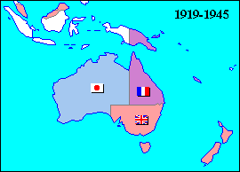 After the War, the League of Nations turned over most of the German Pacific colonies, including West Australia, to the Japanese. The British Zone was expanded a bit west to include Adelaide; the French got the German slice of New Guinea, and the continent quickly settled into your typical colonial torpor.