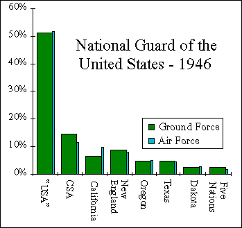 I had originally planned to stir up the anthill and stage some kind of Pan-American War in 1914 or 1940, but there's really no point. It would be a walkover -- no contest at all. As recently as 1946, the eighteen states of the "USA" produced two thirds of of the continent's GNP. At the end of Second World War, the National Guards of these 18 states equaled the combined manpower of the other 30 -- and this doesn't even take into account that the taxes from these states supported over 60% of the regular army. Although the dominance of this region has been eroding over the past 50 years, big multinational wars disappeared with the dawning of the atomic age, so it's too late now to have our Pan-American War.